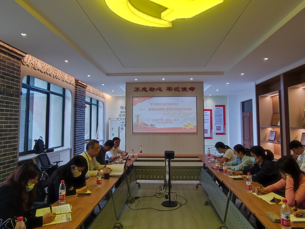 为贯彻落实习近平总书记在庆祝中国共产党成立100周年大会上的重要讲话精神, 9月24日上午,校党委常委、副校长赵斌同志在行政楼A507为百家乐app 师生做了主题为“学习贯彻习近平总书记’七一’重要讲话精神 推动学校高质量发展”的宣讲。百家乐app 党委副书记王敏达、各支部委员及学生党员代表参加了宣讲会。会议由王敏达副书记主持。