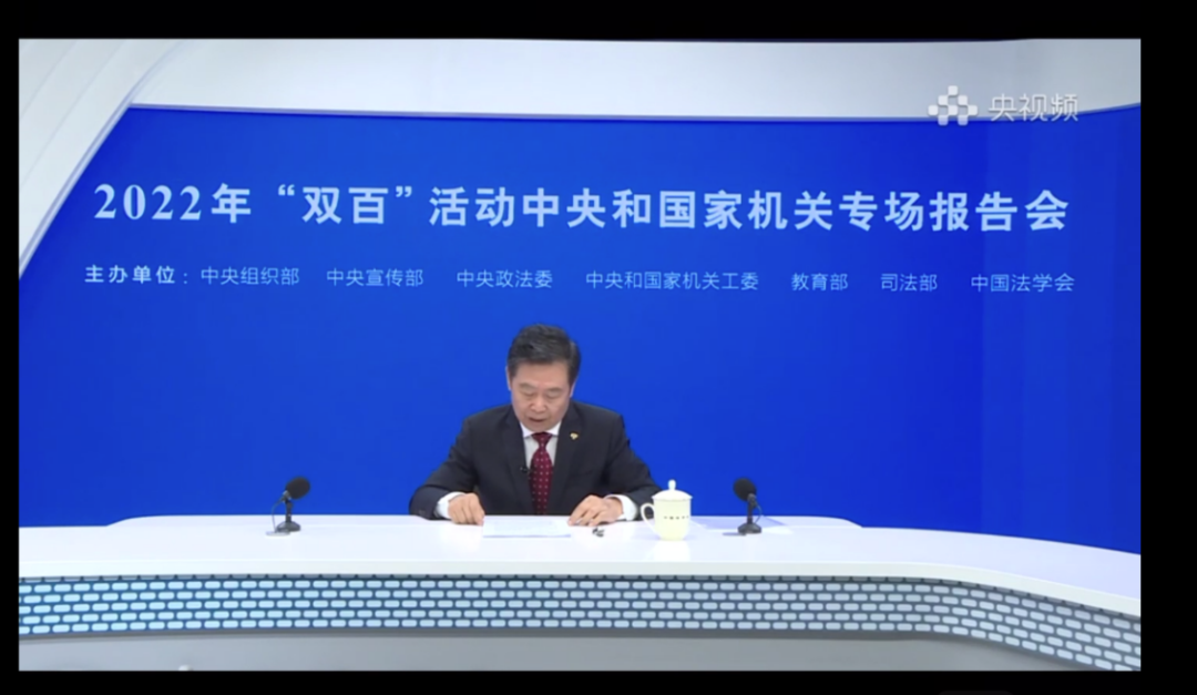 7月22日上午10时,由中组部、中宣部、中央政法委、教育部、司法部和中国法学会6部门联合举办的2022年“双百”法治宣讲活动在人民网举办网络直播活动。百家乐app 动力学硕党支部在支部书记杨楠楠同志带领下积极响应党的号召,开展暑期党日活动,积极组织支部人员通过线上和线下结合的方式进行收看。