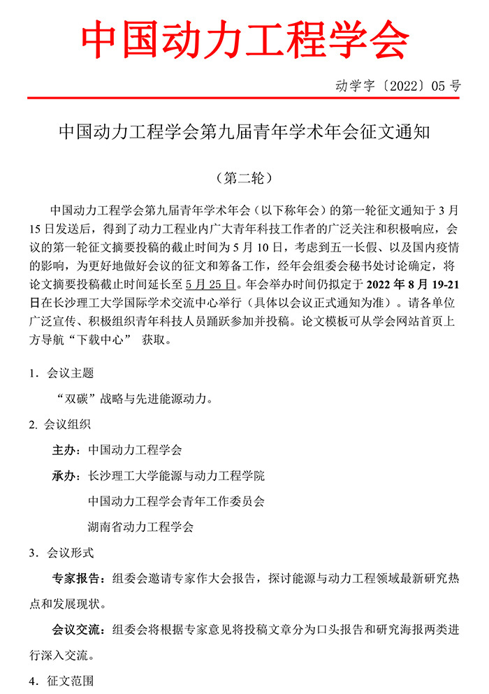 中国动力工程学会第九届青年学术年会征文通知(第二轮)