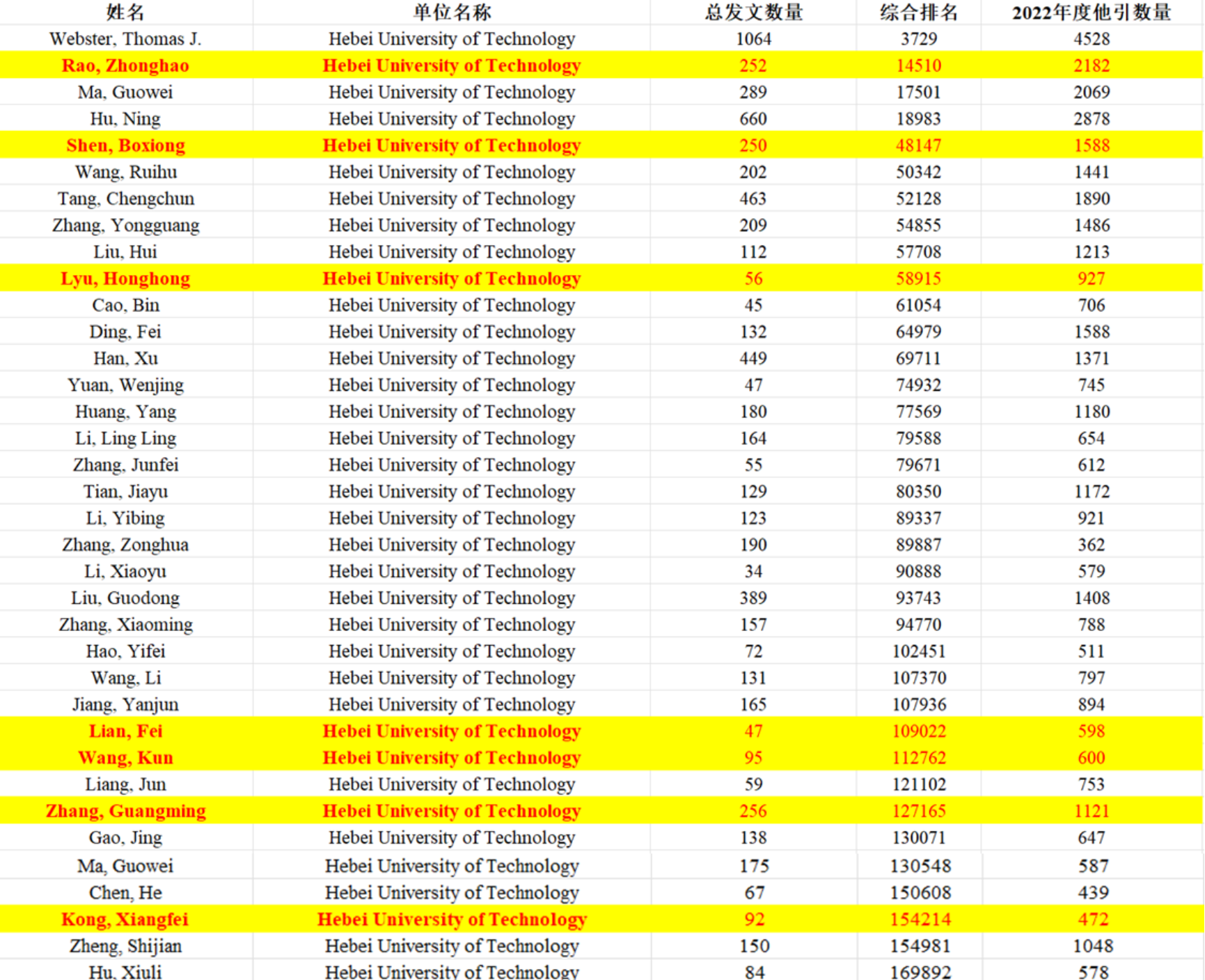 河北工业大学62位学者入选2023年度科学影响力排行榜