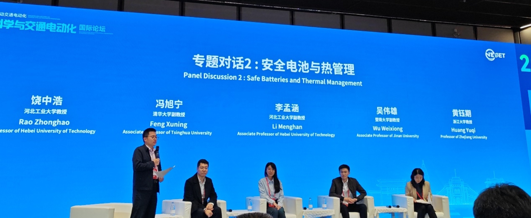 论坛上饶中浩教授受邀与浙江大学黄钰期教授共同担任专题对话:安全电池与热管理的召集人,李孟涵副教授作为特邀嘉宾,以“热失控次生灾害及消防灭火”为主题参与了该专题对话的讨论活动。吕培召老师作为特邀嘉宾参与“电池材料与设计”专题对话,并进行了高负载电极的设计与电池热安全相关话题的讨论。