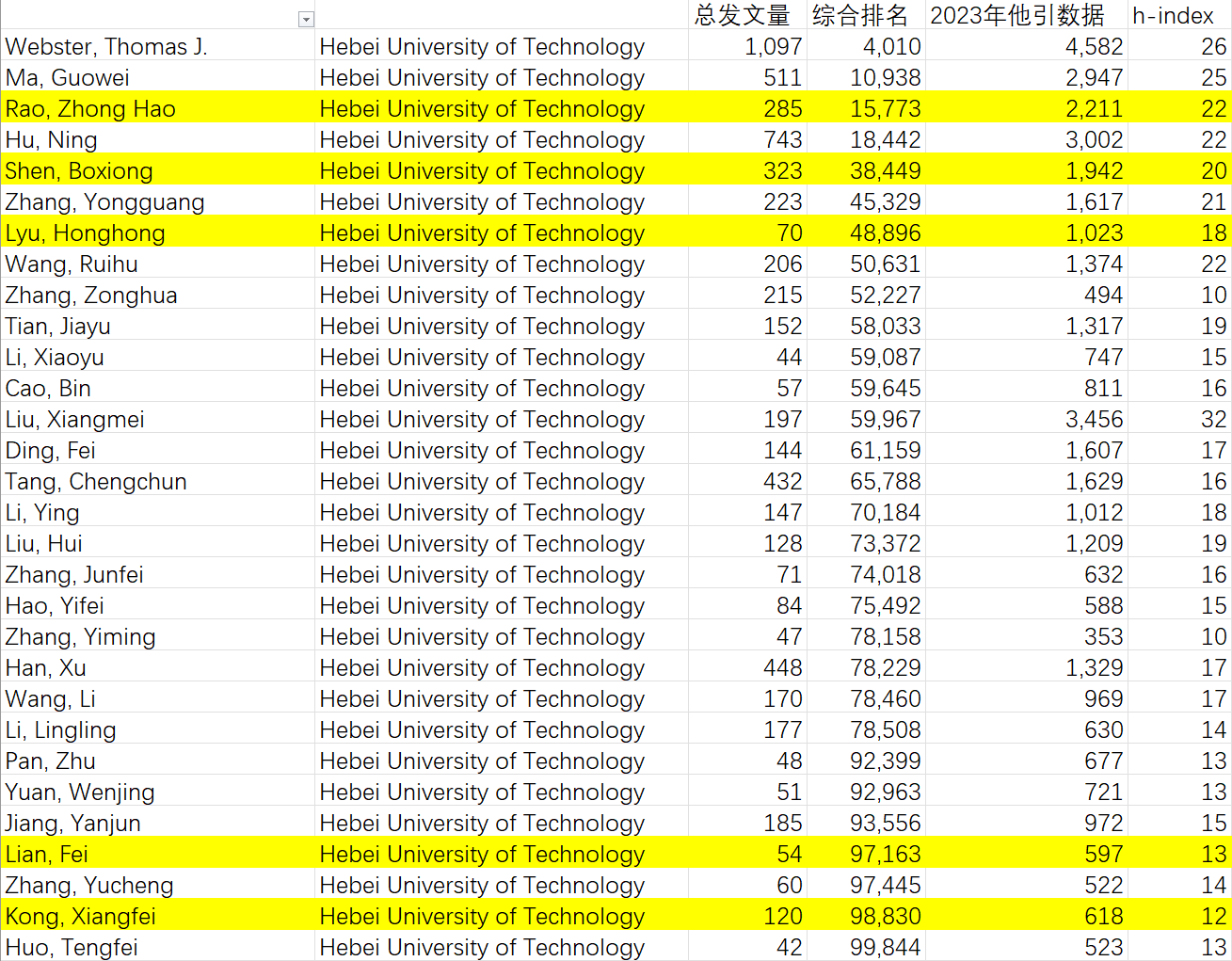 河北工业大学82位学者入选2024年度科学影响力排行榜