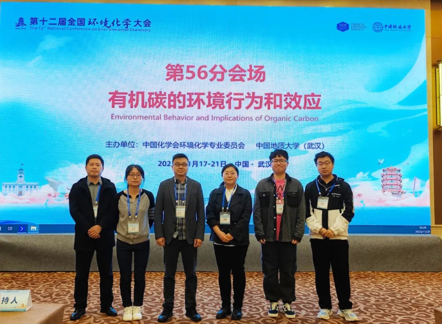 11月17至21日,由中国化学会环境化学专业委员会和中国地质大学(武汉)主办的“第十二届全国环境化学大会”在武汉召开。百家乐app 污染控制与健康研究所研究员廉菲、副教授王美艳、副研究员王菲、孙斌斌老师以及硕士研究生李子萌、刘星雨齐聚武汉国际博览中心会议中心,共赴学术盛宴。