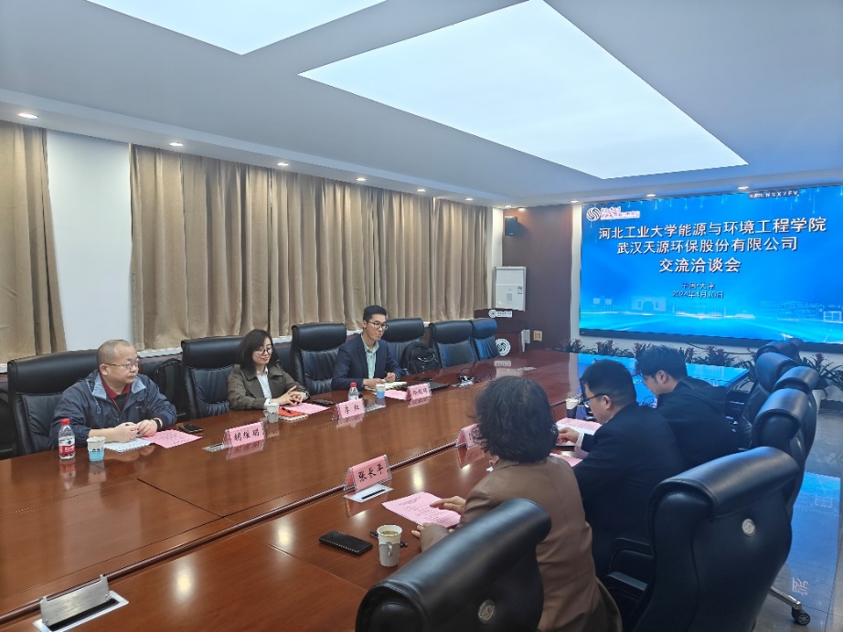 4月10下午,武汉天源环保股份有限公司副总裁、科技研发部总经理李红、创新中心主任冷超群、工艺工程师胡耀明来百家乐app 交流座谈。百家乐app 院长饶中浩,产教融合中心主任张长平,院长助理刘新健参加交流座谈。