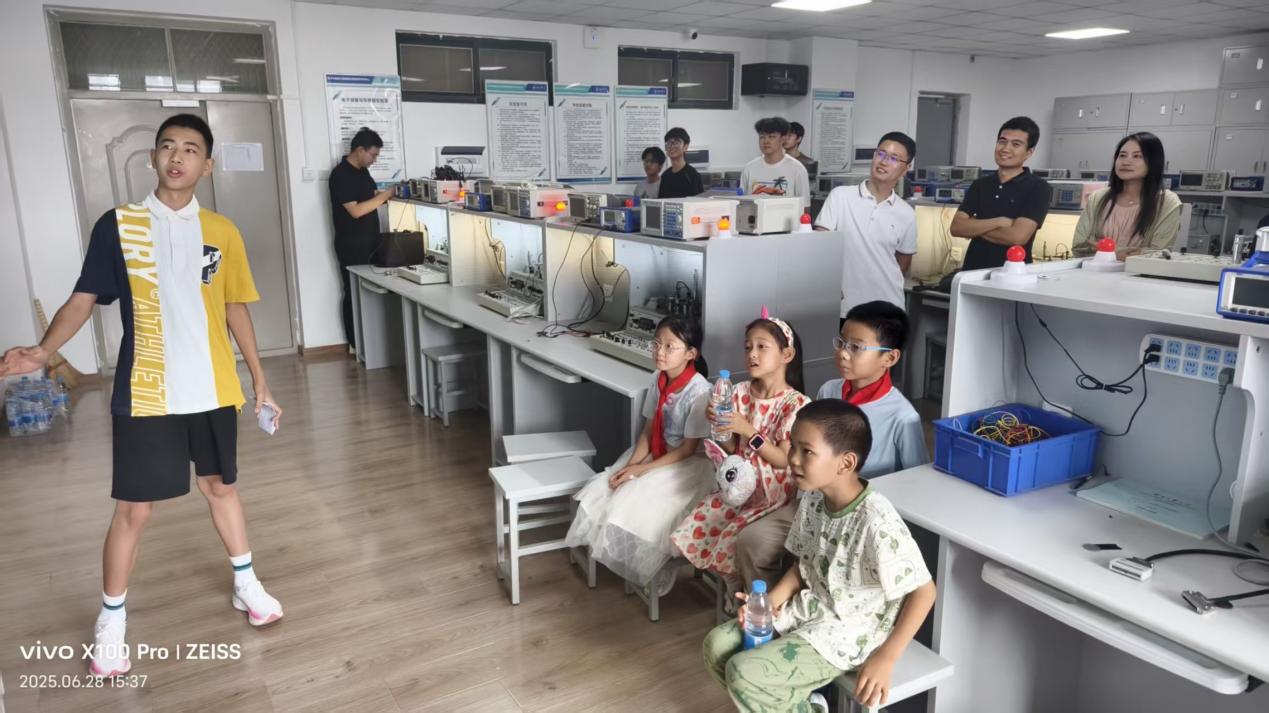 为深入贯彻习近平总书记关于科技创新的重要论述,扎实推进大中小学思政教育一体化,积极响应《教育强国建设规划纲要(2024-2035年)》“沃土计划”要求,落实课程思政结对共建成效,并值此中国共产党成立104周年即将到来之际,河北工业大学百家乐app下载 联合电子信息工程百家乐app 、中汽工程工艺工程院第二党支部,于6月28日下午成功举办“强国有我·绿动未来”生态环保科普开放日活动。百家乐app下载 党委书记张信、电子信息工程百家乐app 党委书记赵其波、中汽工程工艺工程院相关领导出席活动,与42组中小学生家庭共同开启了一场绿色科技探索之旅。
