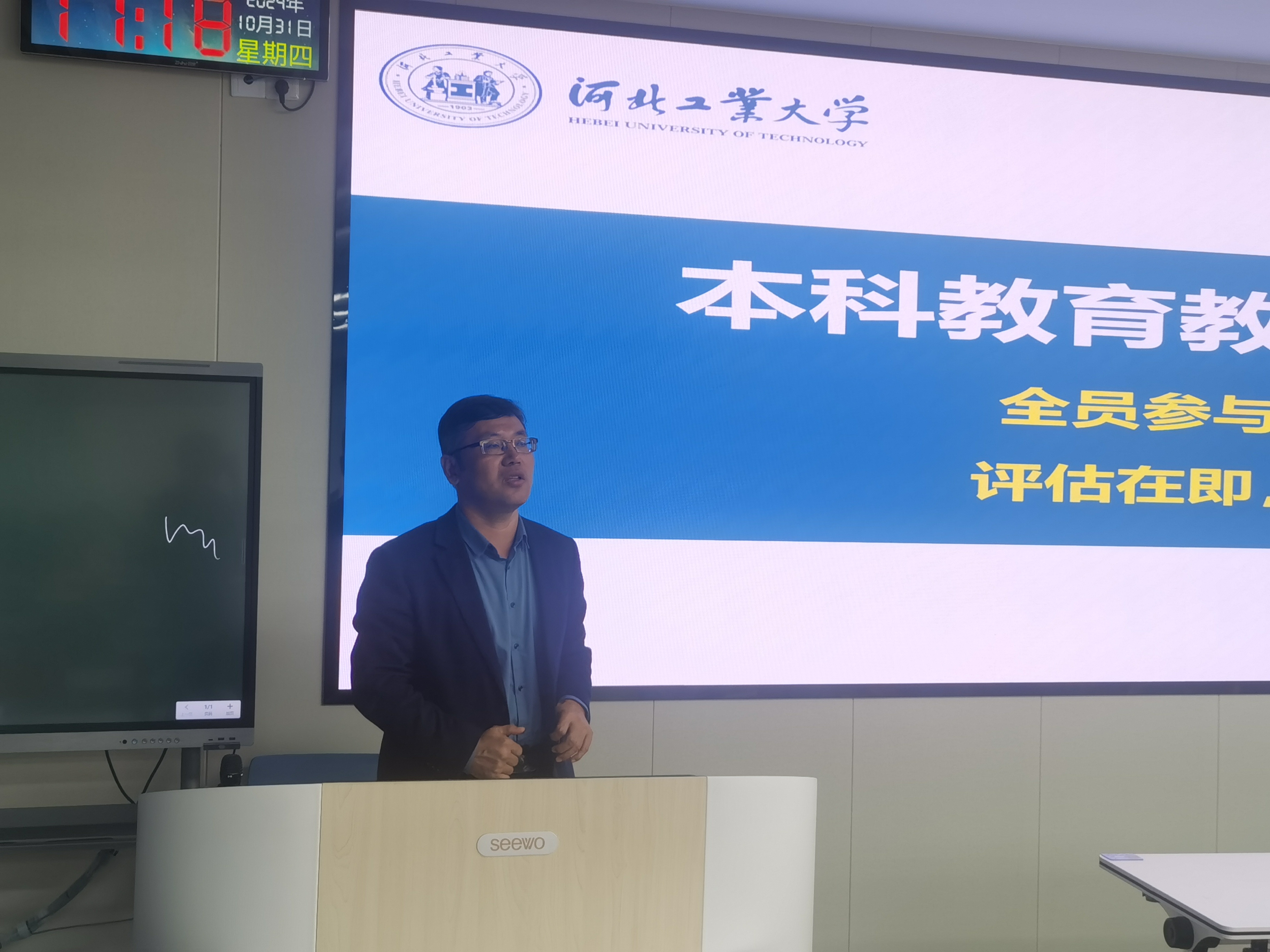 2024年10月31日下午4点,百家乐app 在北辰校区教学楼E201召开全院大会暨本科教育教学审核评估动员会。百家乐app 领导班子全体成员,全体教职工参加会议。会议由百家乐app 副院长王坤主持。