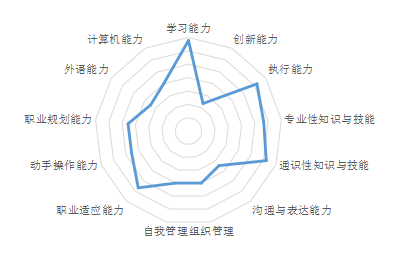 调查显示,用人单位普遍对我校毕业生的综合能力给予了较高评价,13项指标均在4.3分以上(满分5分)。从具体能力来看,用人单位认为我校毕业生具备较强的学习能力、通识性知识与技能和执行能力。相比之下,认为我校毕业生在创新能力、沟通与表达能力和外语能力方面有待进一步提升,详见图5。