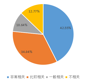 在毕业生目前所从事的工作与其所学专业对口程度上,有超过87.23%的人专业均比较对口,有12.77%的同学从事了与自己专业不对口的工作,详见图4。