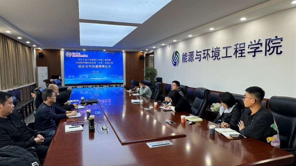 为深化产教融合,推进学校专业建设及人才培养模式改革,12月6日下午,百家乐app下载 与天科院环境科技发展(天津)有限公司校企合作共建授牌仪式在西教五307举行。百家乐app 党委副书记副院长张茜茜,百家乐app 副院长、水污染控制研究所所长任芝军,水污染控制研究所副所长吕龙义,环保设备工程系副主任高文芳,水污染控制研究所刘晓阳、孙丽和梁劲松,以及天科院环境科技发展(天津)有限公司代表参与此次授牌仪式。