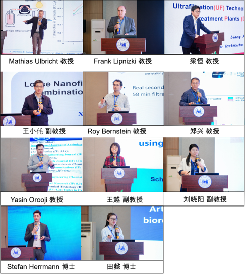 来自德国埃森杜伊斯堡-埃森大学的Mathias Ulbricht教授、瑞典隆德大学的Frank Lipnizki教授、哈尔滨工业大学的梁恒教授、清华大学的王小𠇔;副教授、以色列本古里安大学的Roy Bernstein教授、浙江科技大学郑兴教授、浙江师范大学Yasin Orooji教授、天津工业大学王越副教授、河北工业大学刘晓阳副教授、特文特大学Stefan Herrmann博士、浙江大学田懿博士11位国内外专家学者分别就推进海水淡化、基于膜的水处理解决方案、超滤技术、饮用水处理、膜表面改性与防污染、低碳膜系统运行、膜污染防治策略、厌氧生物膜法原位回收、膜污染行为研究、膜接触器臭氧化、膜生物反应器的应用等关键技术和应用进行了精彩报告,展示了膜科学与技术领域的最新研究成果与发展趋势。