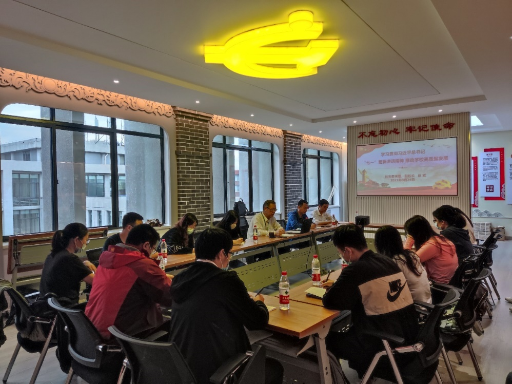 为贯彻落实习近平总书记在庆祝中国共产党成立100周年大会上的重要讲话精神, 9月24日上午,校党委常委、副校长赵斌同志在行政楼A507为百家乐app 师生做了主题为“学习贯彻习近平总书记’七一’重要讲话精神 推动学校高质量发展”的宣讲。百家乐app 党委副书记王敏达、各支部委员及学生党员代表参加了宣讲会。会议由王敏达副书记主持。